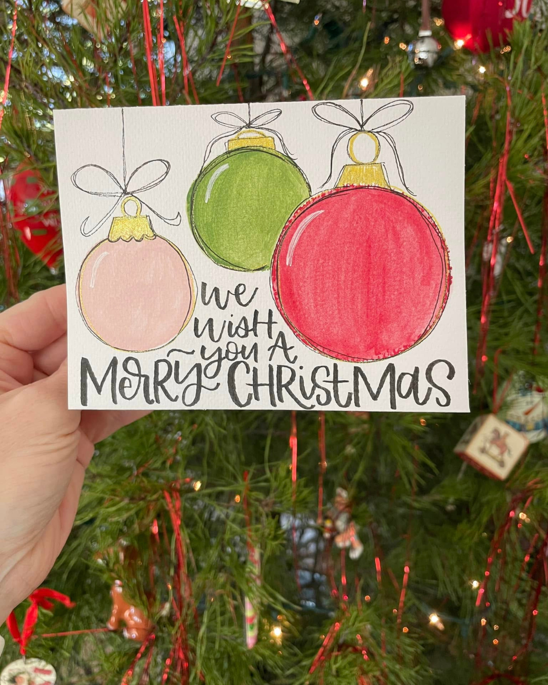 How to Make Hand Lettered Christmas Cards with Watercolor Ornaments